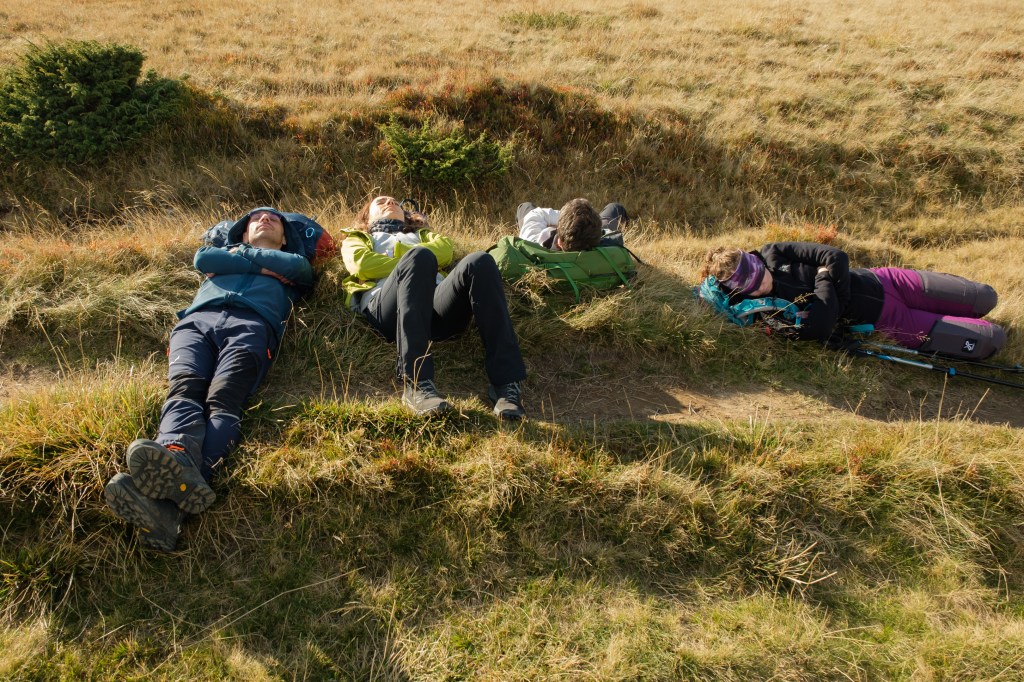 Odata ajunsi sus, am dat iama in mancarea din rucsaci si ne-am relaxat 30min, unii sforaind, alti doar asculand linistea.