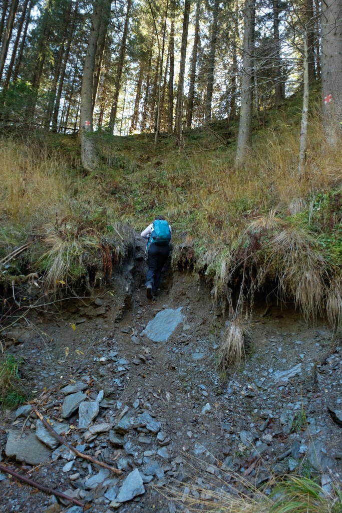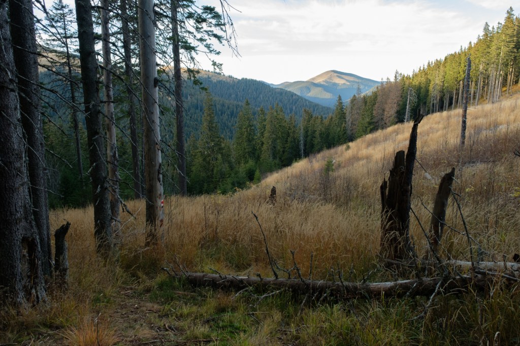 Traseul spre Vf. Leaota (2133m) incepe din spatele cabanei, pe un „picior” marcat cu cruce rosie. Partea de inceput a traseului este prin padure de molid si abrupta insa panta se mai domoleste dupa ce iesi din padure in golul alpin. Noi am trecut si printr-o exploatare forestiera unde a trebuit sa sarim peste crengi si copaci doborati. Nu sunt stani active pe traseu (pasunatul in zona asta este interzis) asa ca poate fi facut si in perioada de oierit.