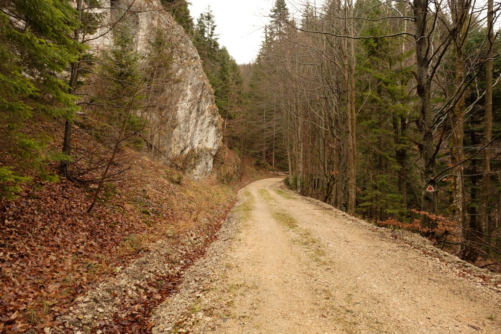 Am lasat masina la Babarunca, langa un fost hotel de pe marginea drumului, locul fiind aproape de inceputul traseului. Era singura masina din parcare. Traseul incepe peste drum de hotel, pe un drum forestier marcat cu triunghi rosu (marcaj refacut). Drumul forestier este pietruit si urmareste cursul unui parau ce formeaza mai sus Cheile Babaruncii. Poate fi practicat si cu bicicleta pe o lungime de 6.5km apoi se infunda.