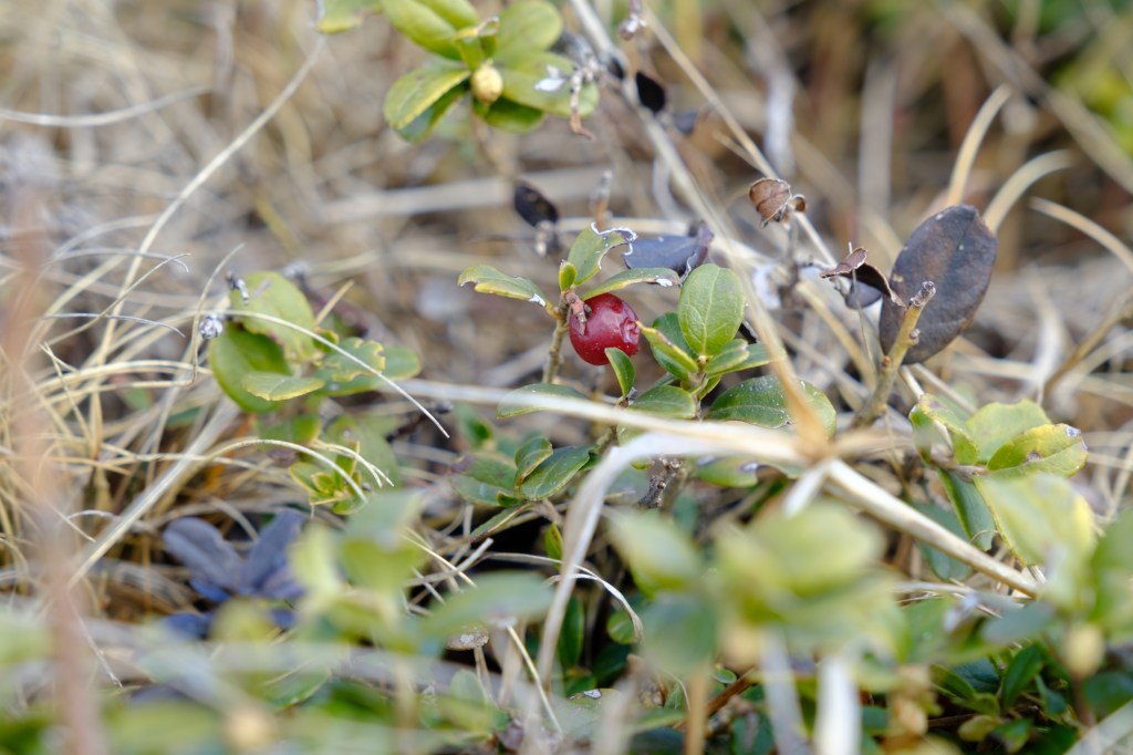 Pana la „La rascruce” dam si peste niste portiuni cu zapada in amintirea iernii ce a trecut. Facem dreapta si o luam la deal spre Vf. Gropsoare, aproape in maneca scurta, la cat de bine incalzea soarele (cred ca si bluza neagra era de vina). Gasim pe drum merisoare din sezonul trecut (asta toamna) cu gust specific: amarui fermentat.
