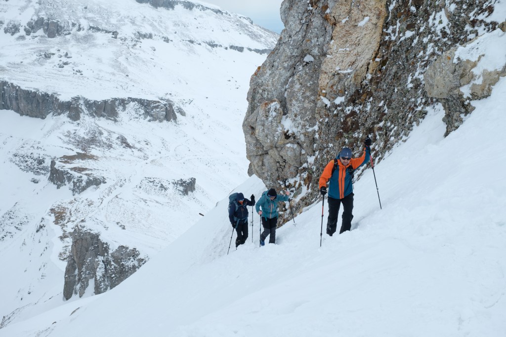 De la cascada Ialomitei în sus, stratul de zăpadă a devenit continuu, însă poteca a continuat să fie tare și am putut merge fără să ne afundăm. Urcarea finală din valea Ialomiței, pe lângă Mecetul Turcesc, am parcurs-o pe zăpadă și s-a urcat ușor, fără colțari.