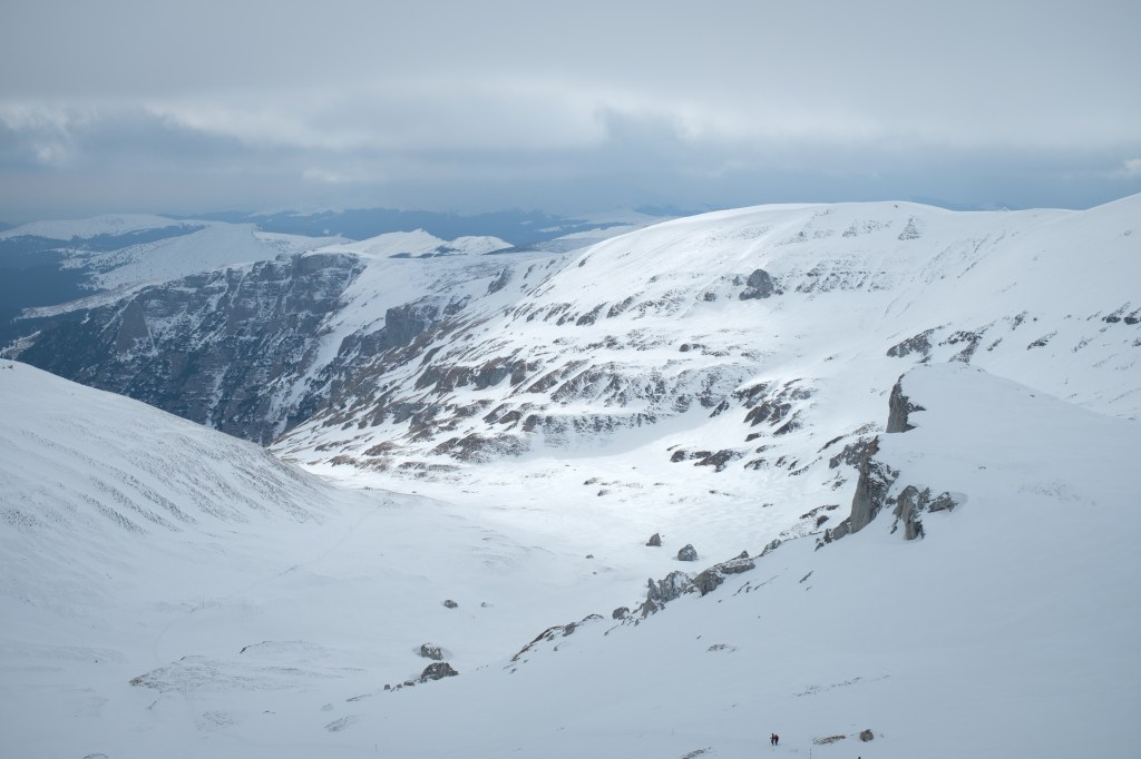 Am optat să coborâm tot pe valea Ialomiței, știind deja condițiile de pe traseu. Am văzut și oameni pe sus, pe culmea Doamnele, însă am preferat să ne urmăm planul inițial. Faptul că am ajuns la Vf. Omu, iarna, a fost destulă aventură pentru o zi.